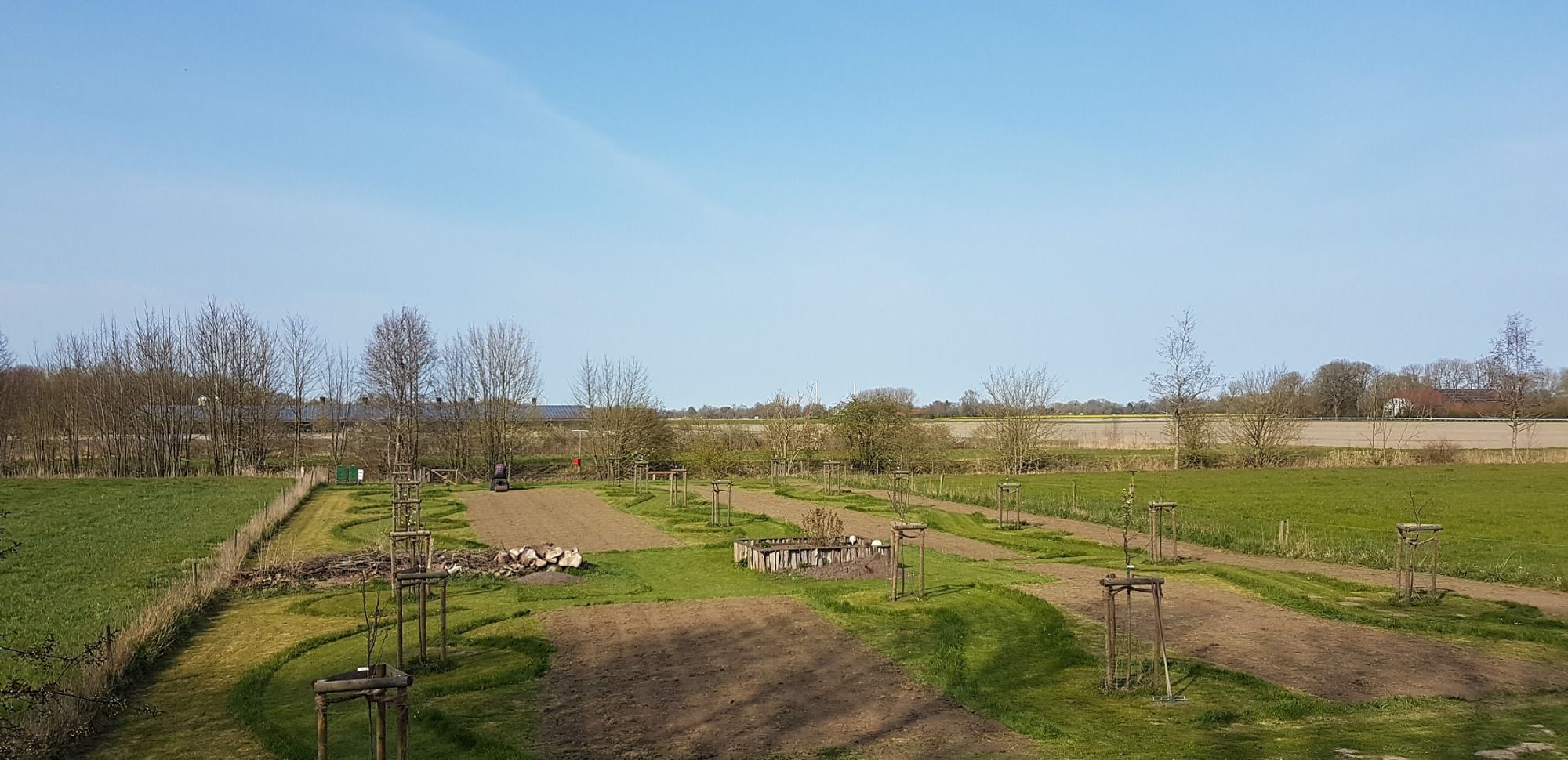 Ostern 2018 war es soweit, aus unserer alten Pferdekoppel wurde innerhalb von zwei Tagen, durch ein hoch motiviertes Team aus Freunden und Familie, die Grundlage für eine Streuobstwiese gelegt. Es wurden 20 Obstbäume alter Sorten gepflanzt, ein großes Staudenbeet und eine Totholzhecke angelegt. Komplettiert wurde das ganze mit dem Aufstellen zweier Bienenstöcke durch einen befreundeten Imker. Die trockenen Sommer hat die Anlage gut gemeistert und wächst dem Klima entsprechend gut.